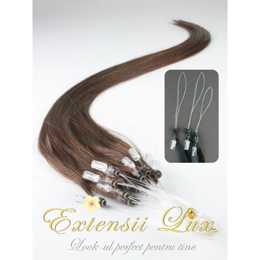 Setul de extensii Microring DeLuxe Saten Ciocolatiu #4 contine 50 de suvite